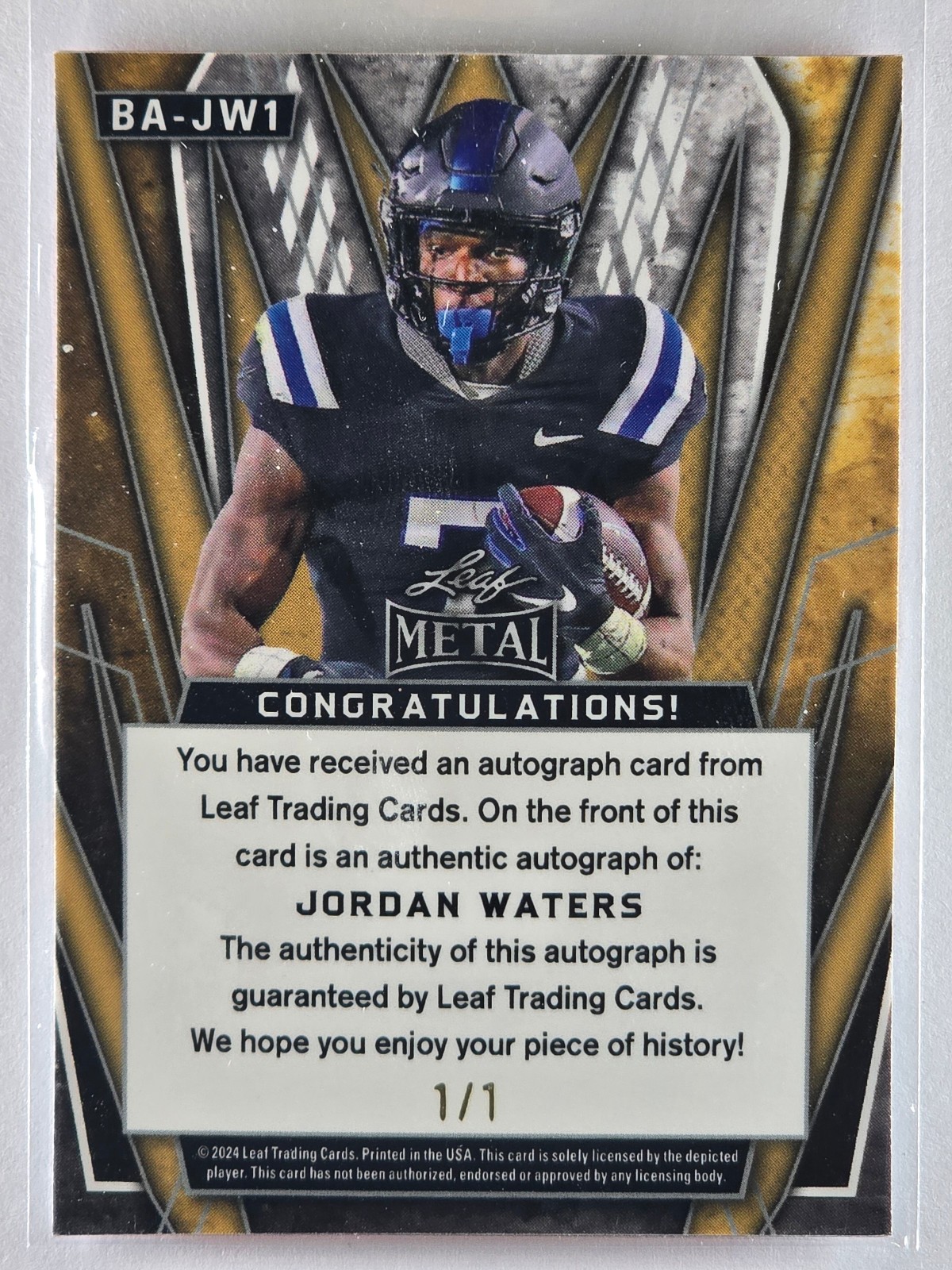 2024 Leaf Metal Jordan Waters Red laser Auto Autographed Signed 1/1 #BA-JW1