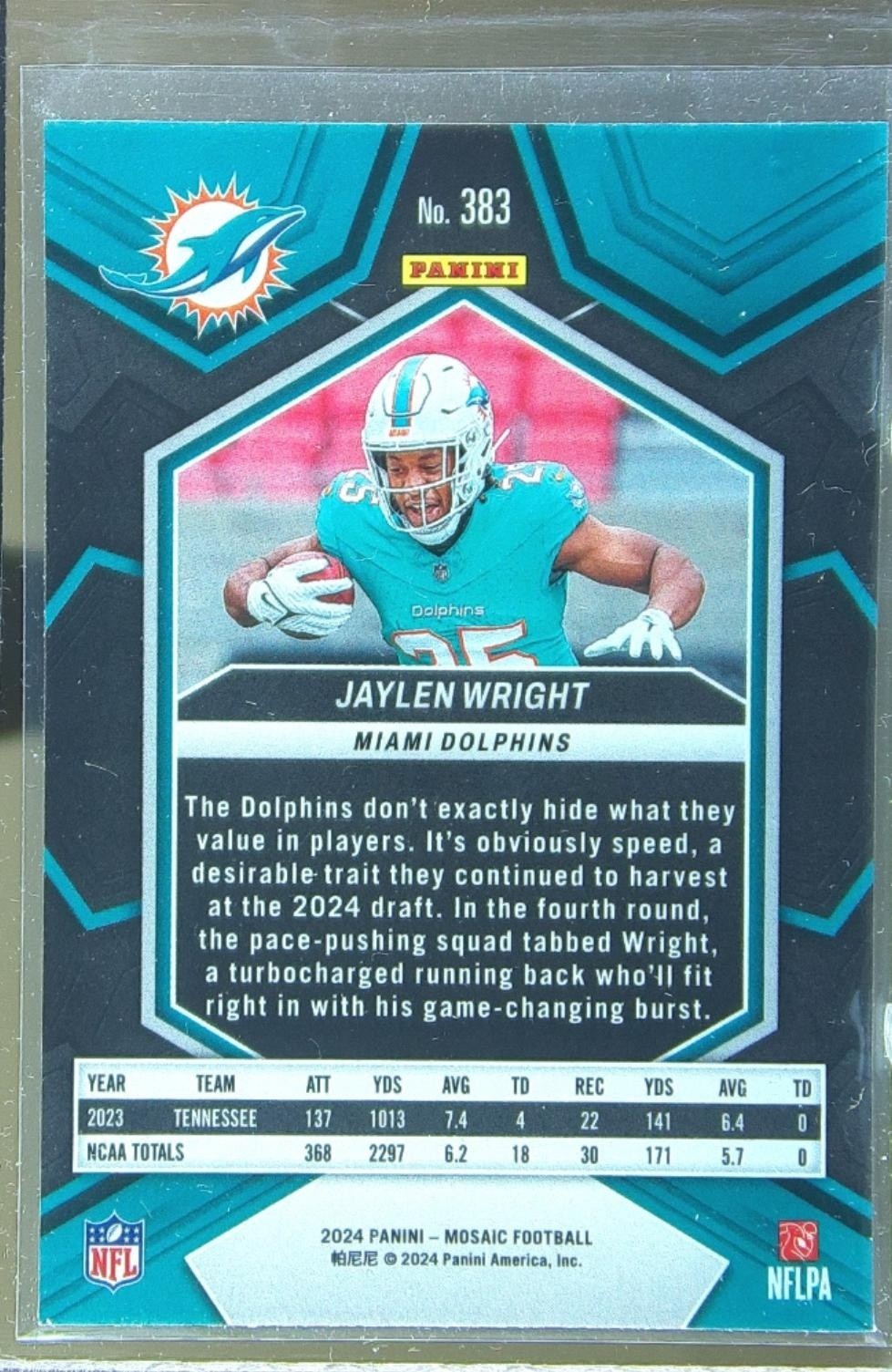 2024 Mosaic Jaylen Wright RC #383 Dolphins