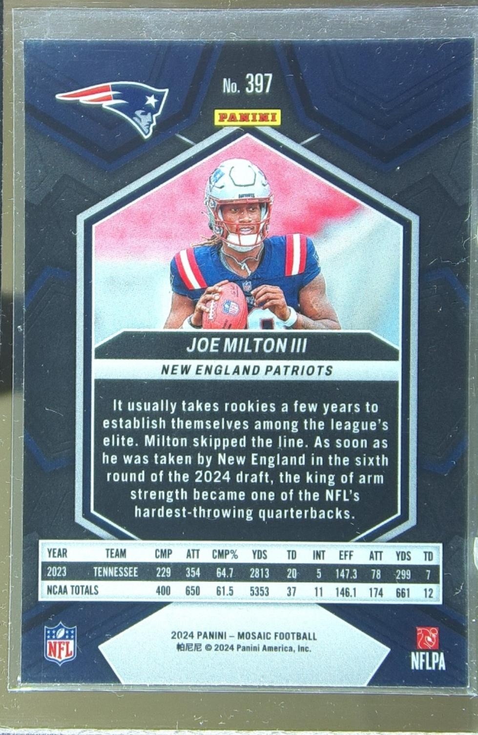 2024 Mosaic Joe Milton III RC #397 Patriots