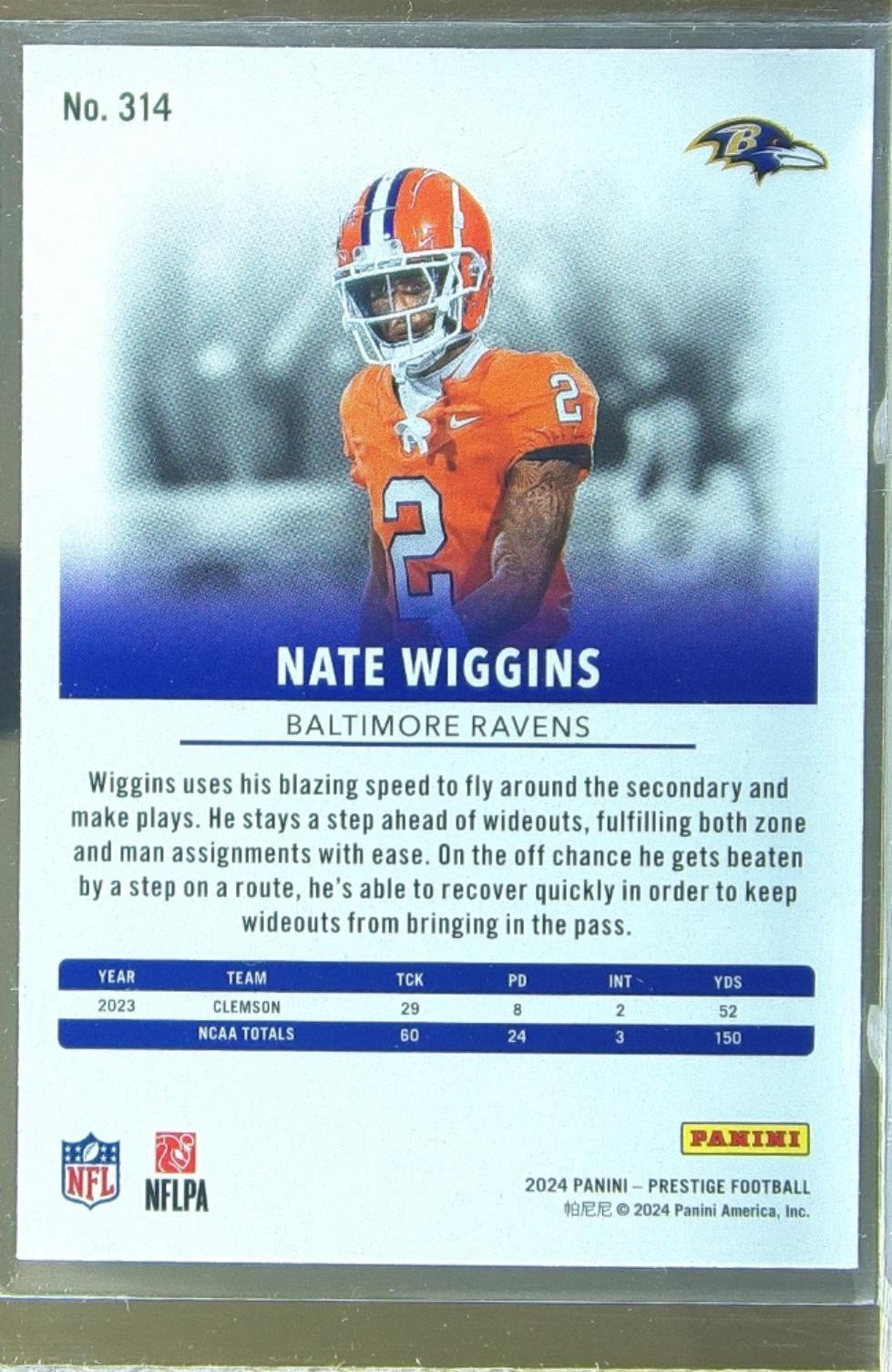 2024 Prestige Nate Wiggins RC #314 Ravens