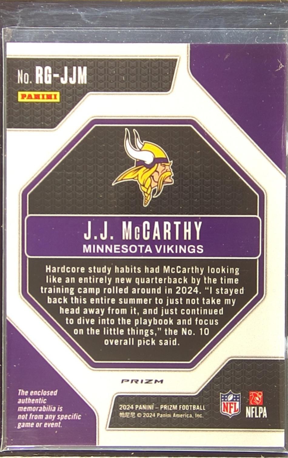 2024 Prizm J.J. Mccarthy RC JSY RG-JJM Vikings Rookie Gear Pink