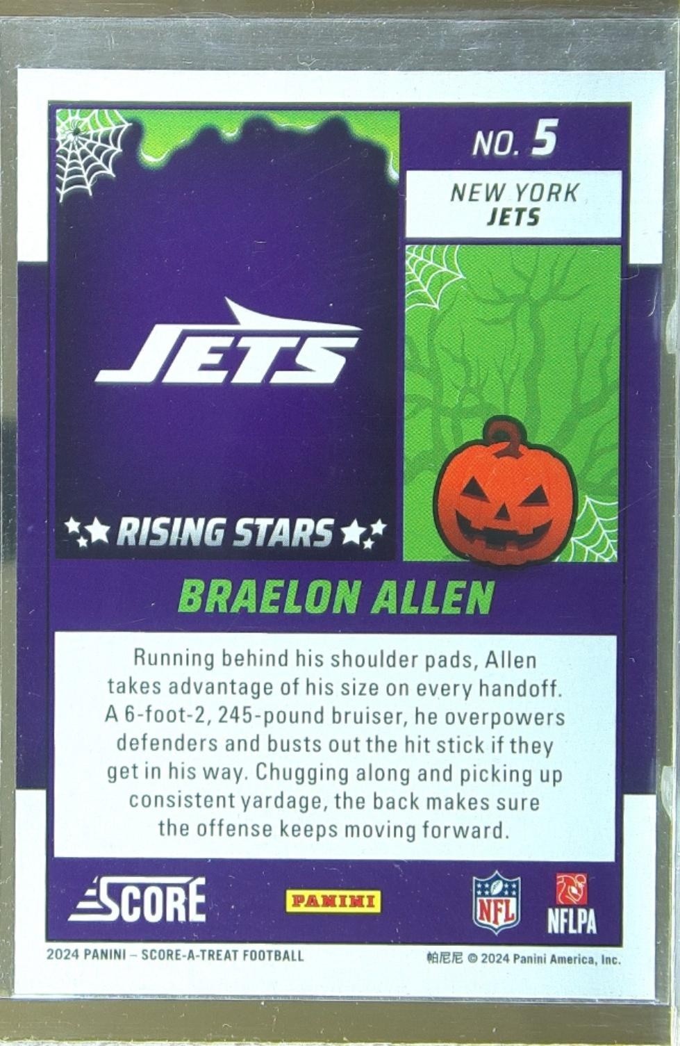 2024 Score-A-Treat Braelon Allen RC #5 Jets Rising Stars Green Bats