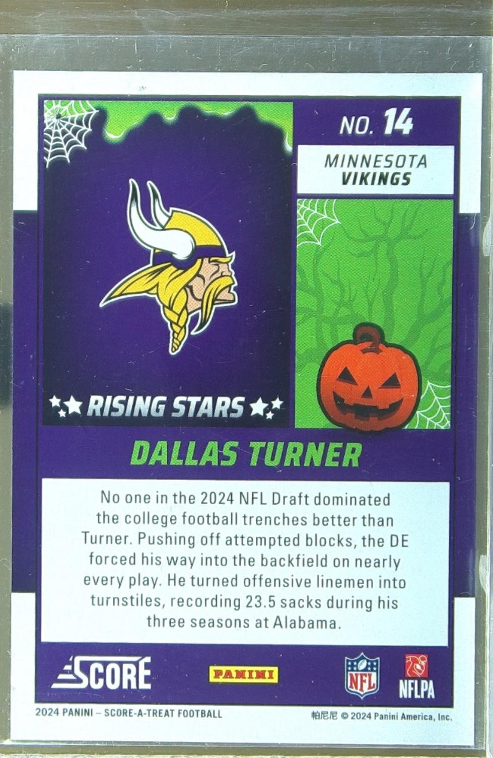 2024 Score-A-Treat Dallas Turner RC #14 Vikings Rising Stars Green Bats