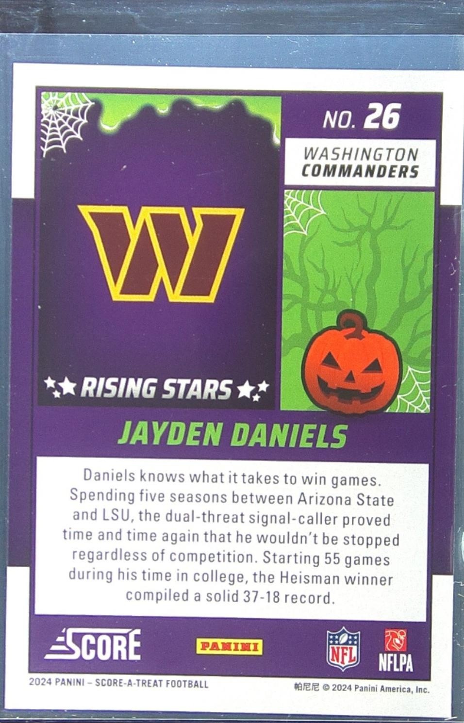 2024 Score-A-Treat Jayden Daniels RC #26 Commanders Rising Stars Orange Pumpkin