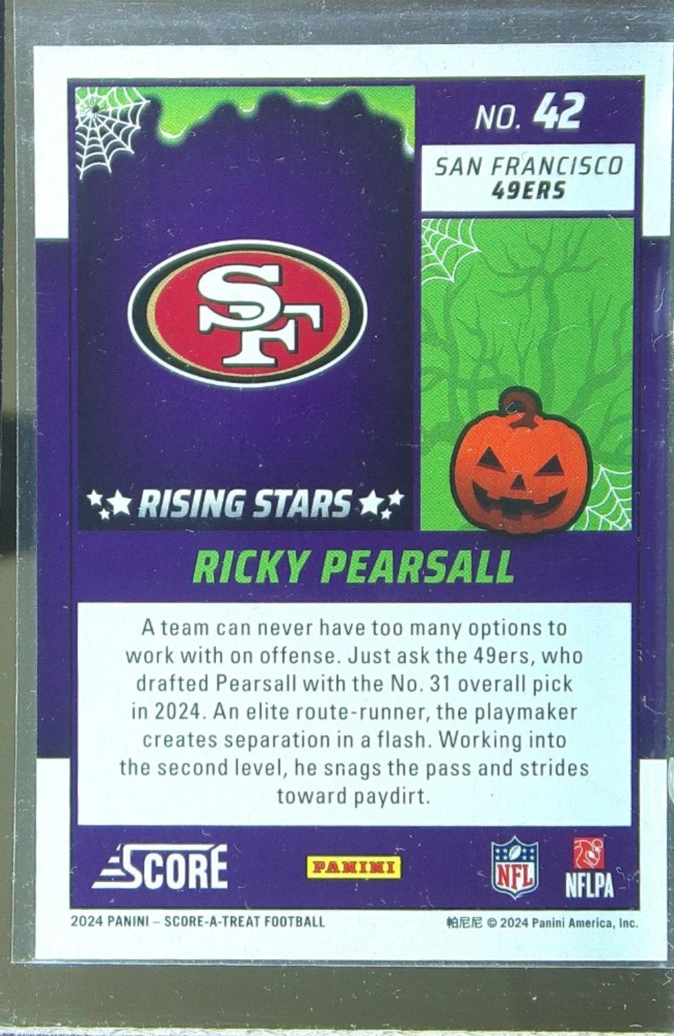 2024 Score-A-Treat Ricky Pearsall RC #42 49ers Rising Stars Orange Pumpkin