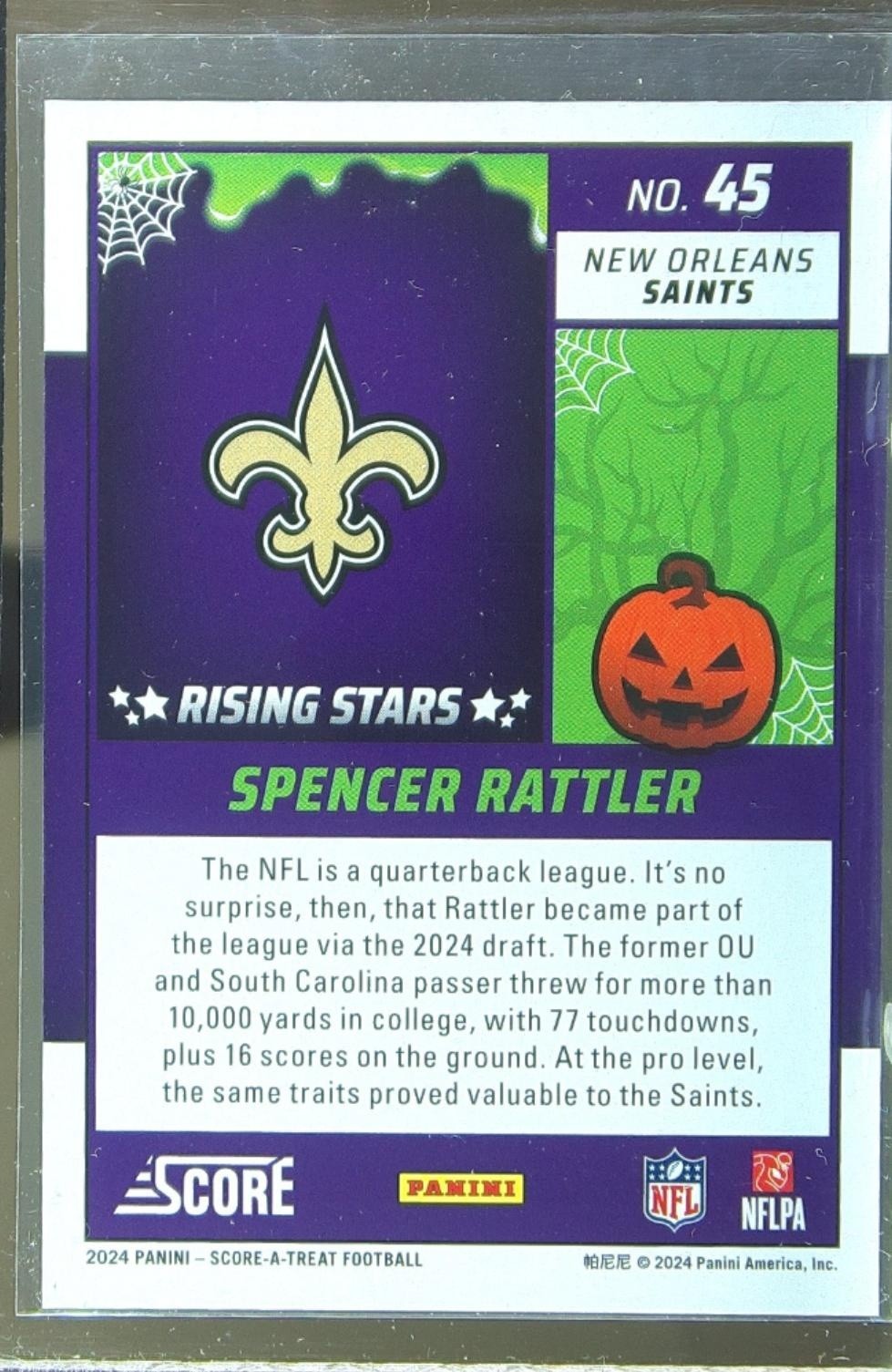 2024 Score-A-Treat Spencer Rattler RC #45 Saints Rising Stars Green Bats
