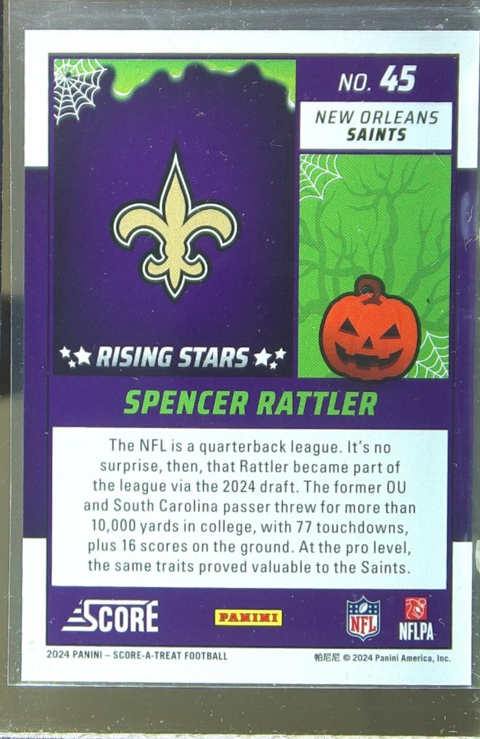 2024 Score-A-Treat Spencer Rattler RC #45 Saints Rising Stars Orange Pumpkin