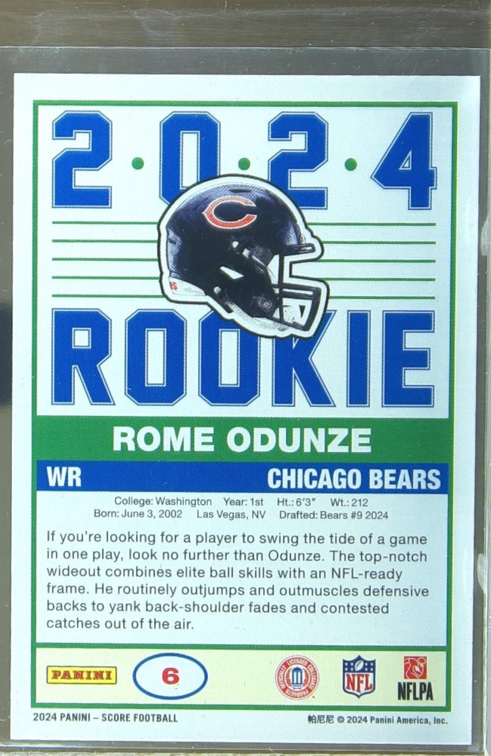 2024 Score Rome Odunze RC #6 Bears 35th Anniversary Rookies