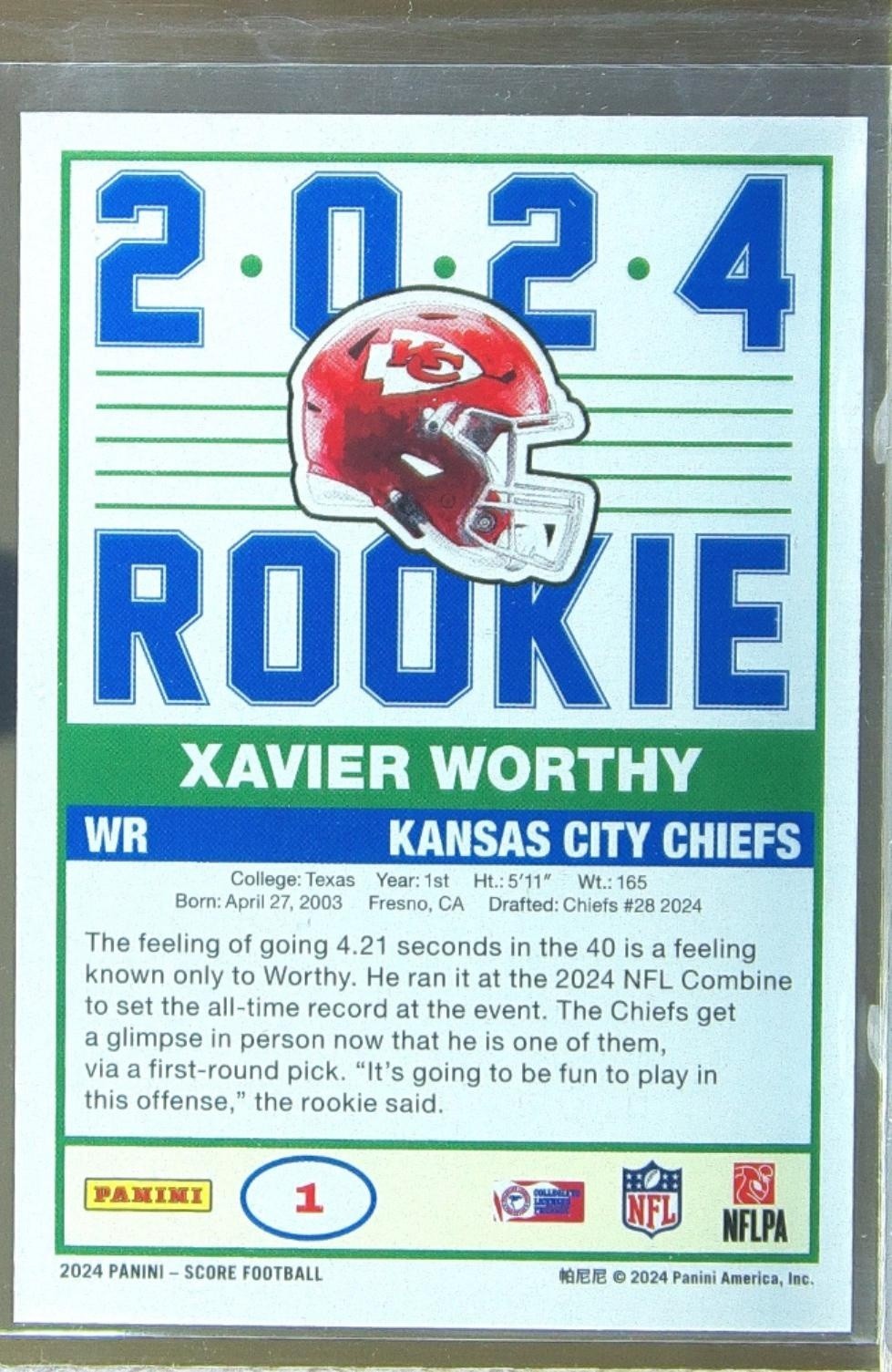 2024 Score Xavier Worthy RC #1 Chiefs 35th Anniversary Rookies