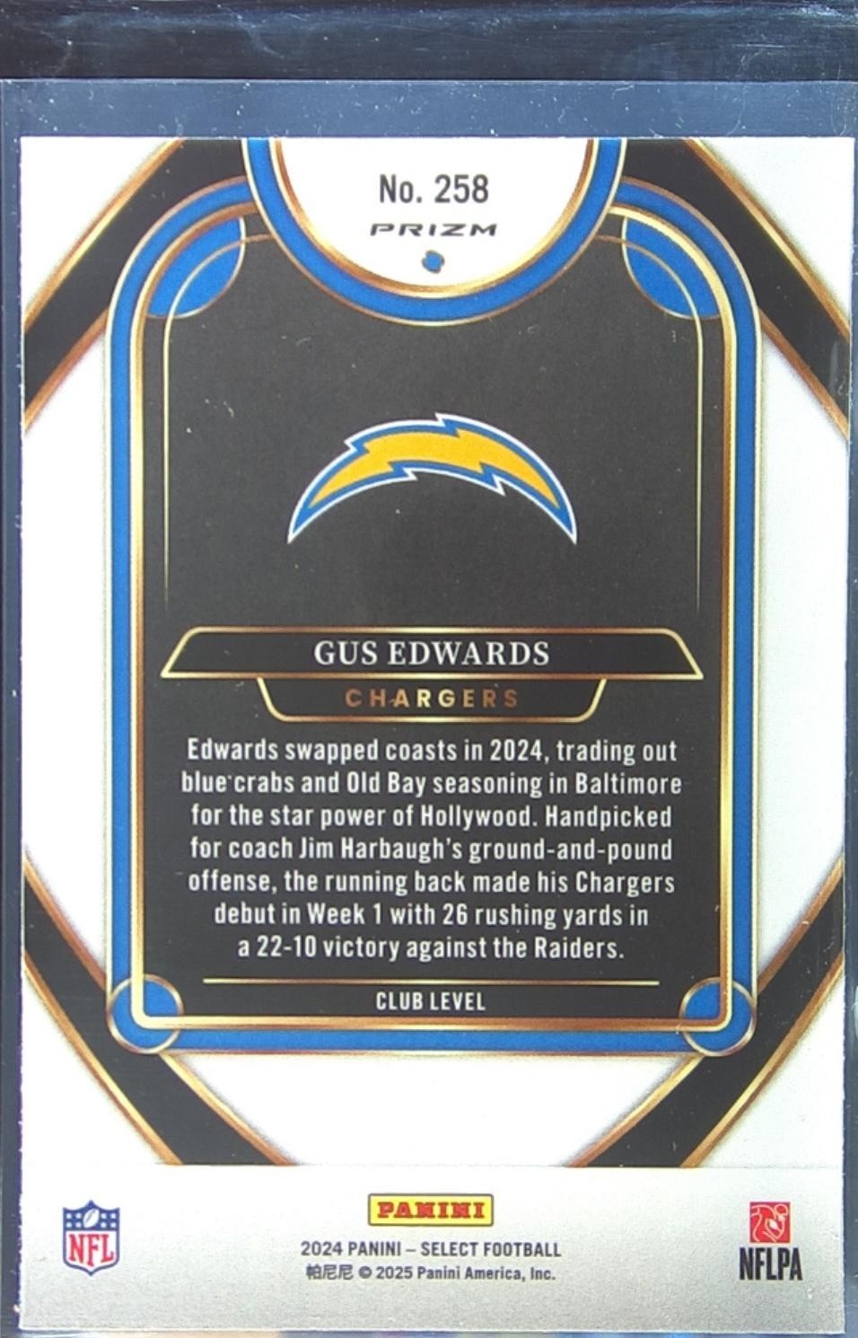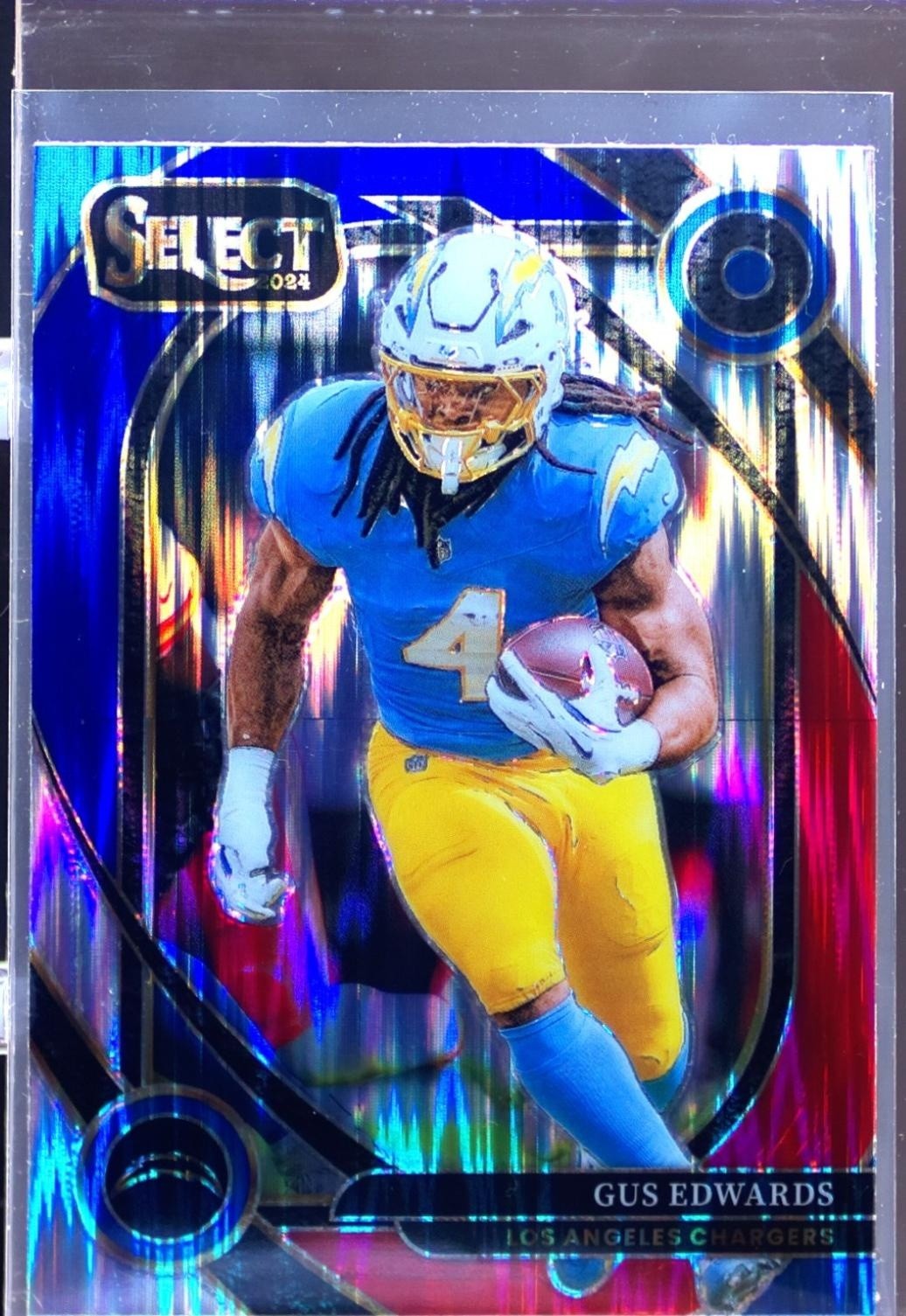 2024 Select Gus Edwards Red & Blue Prizm Shock #258 Chargers