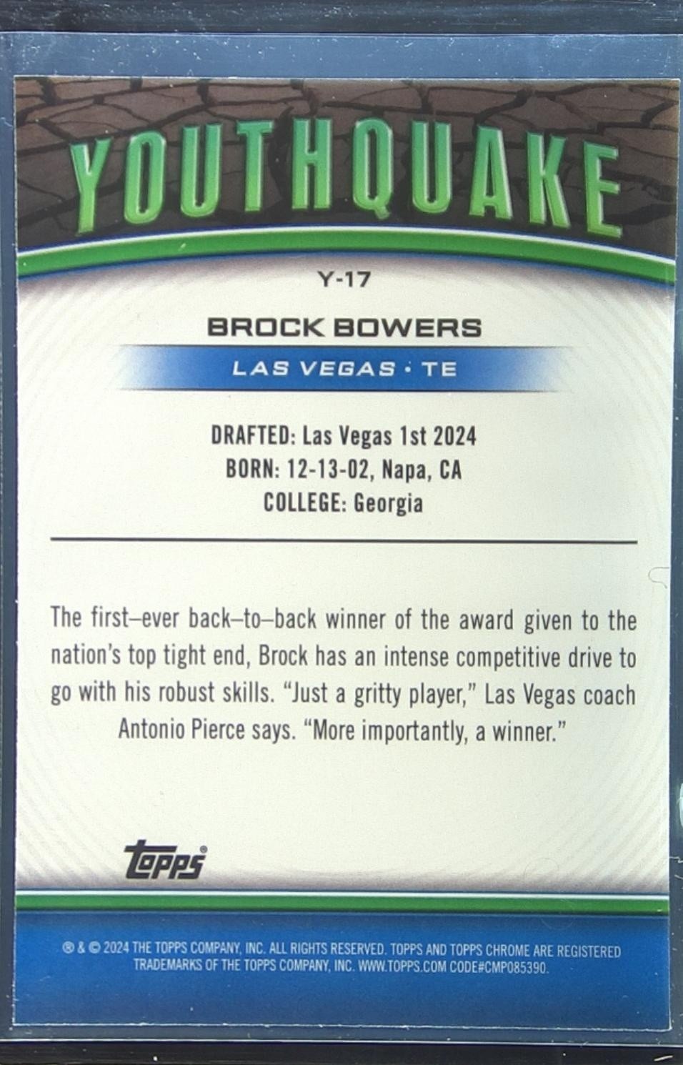 2024 Topps Chrome Brock Bowers RC #Y-17 Raiders Youthquake