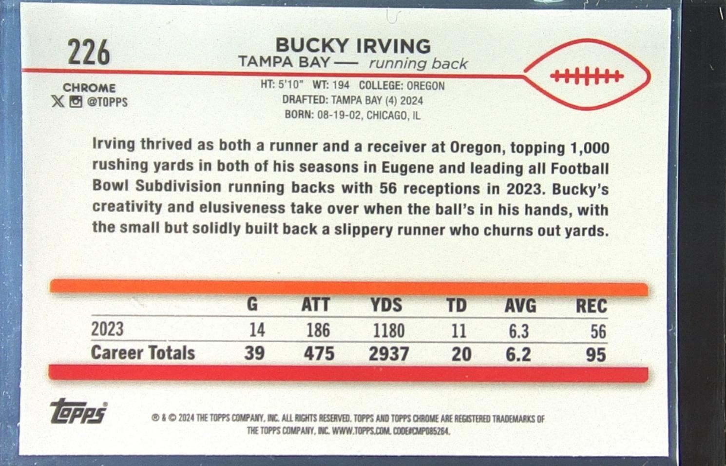 2024 Topps Chrome Bucky Irving RC #226 Buccaneers