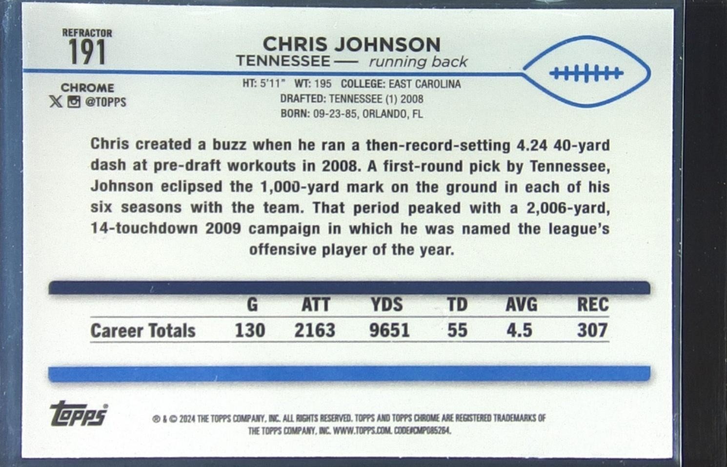 2024 Topps Chrome Chris Johnson Refractor #191 Titans