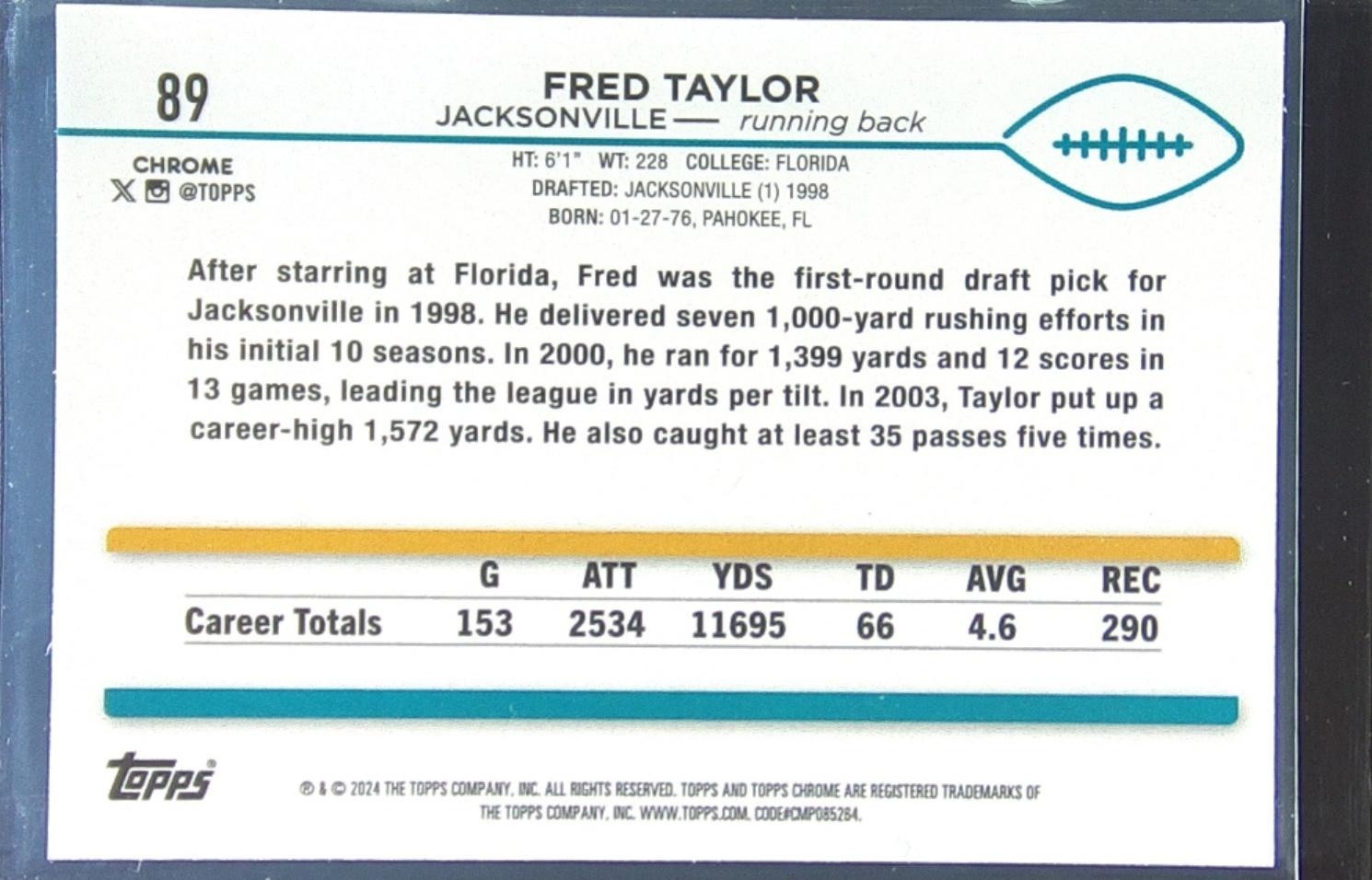 2024 Topps Chrome Fred Taylor Pink Refractor #89 Jaguars