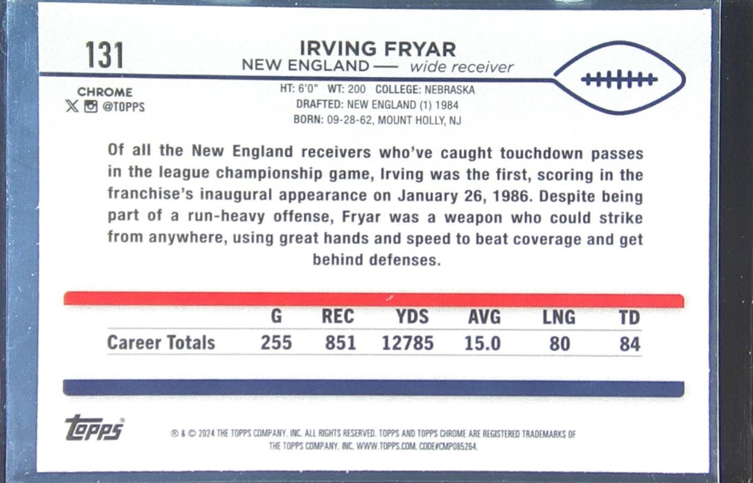 2024 Topps Chrome Irving Fryar Prism Refractor #131 Patriots