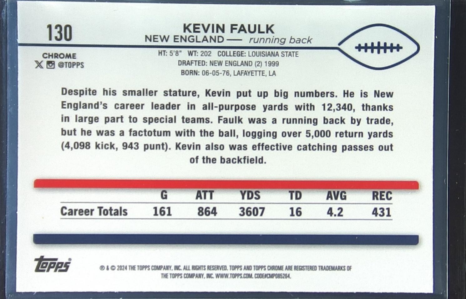2024 Topps Chrome Kevin Faulk Prism Refractor #130 Patriots