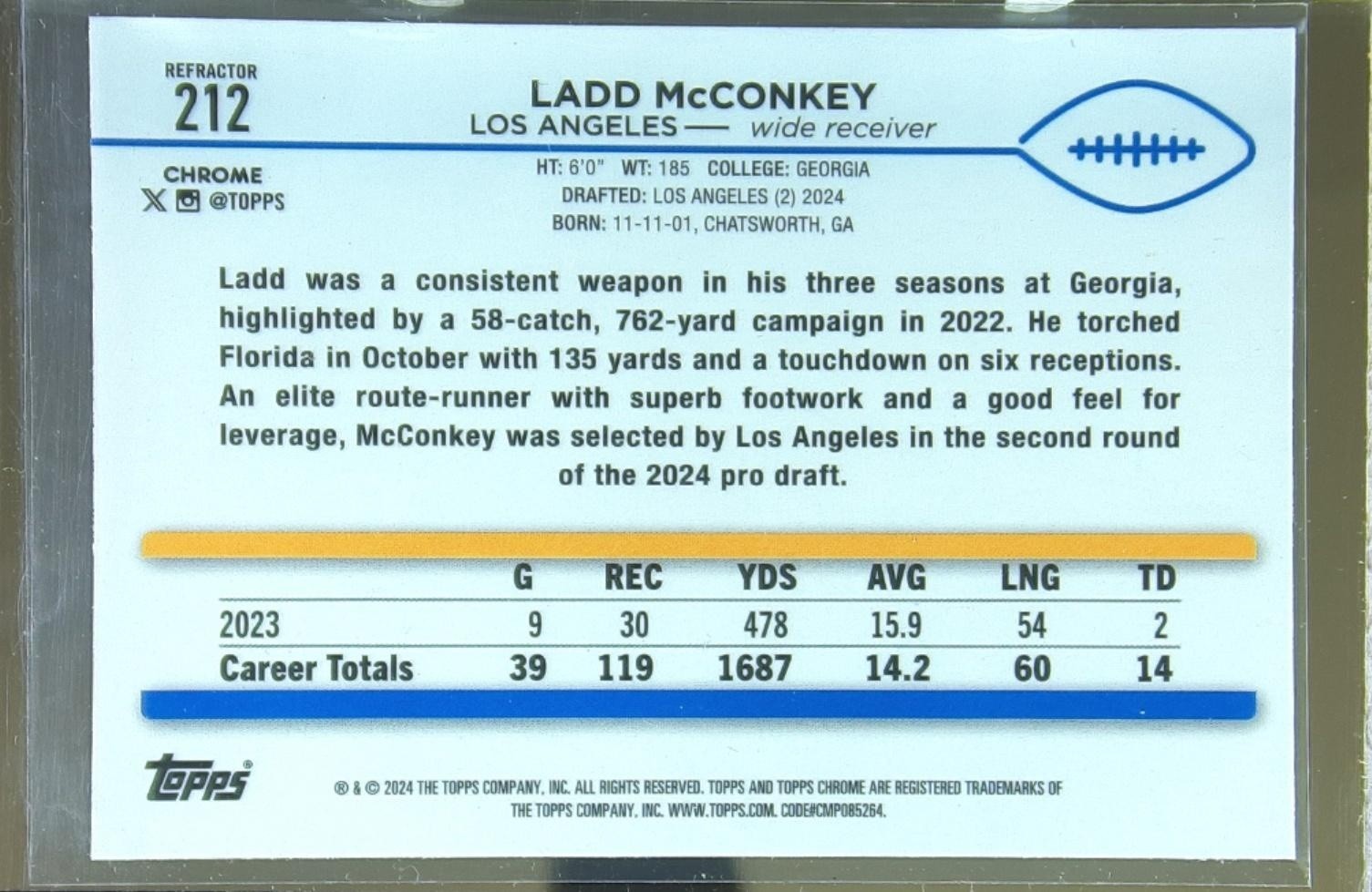 2024 Topps Chrome Ladd Mcconkey Refractor RC #212 Chargers