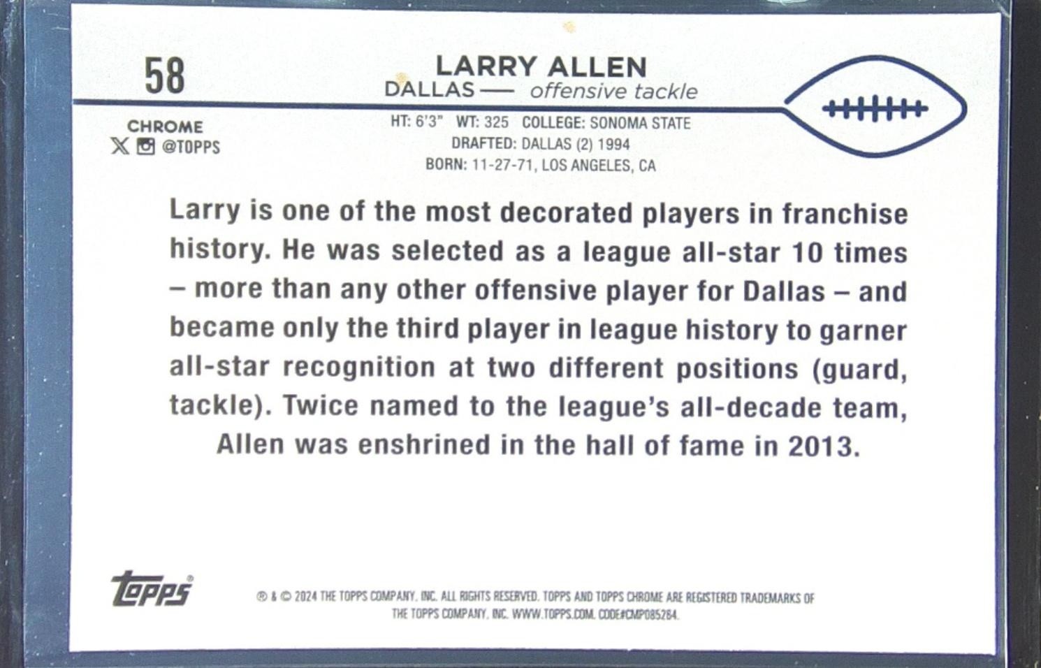 2024 Topps Chrome Larry Allen Pink Refractor #58 Cowboys