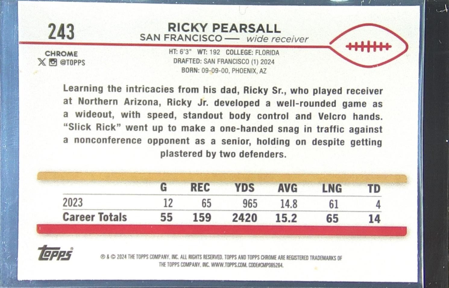 2024 Topps Chrome Ricky Pearsall RC #243 49ers