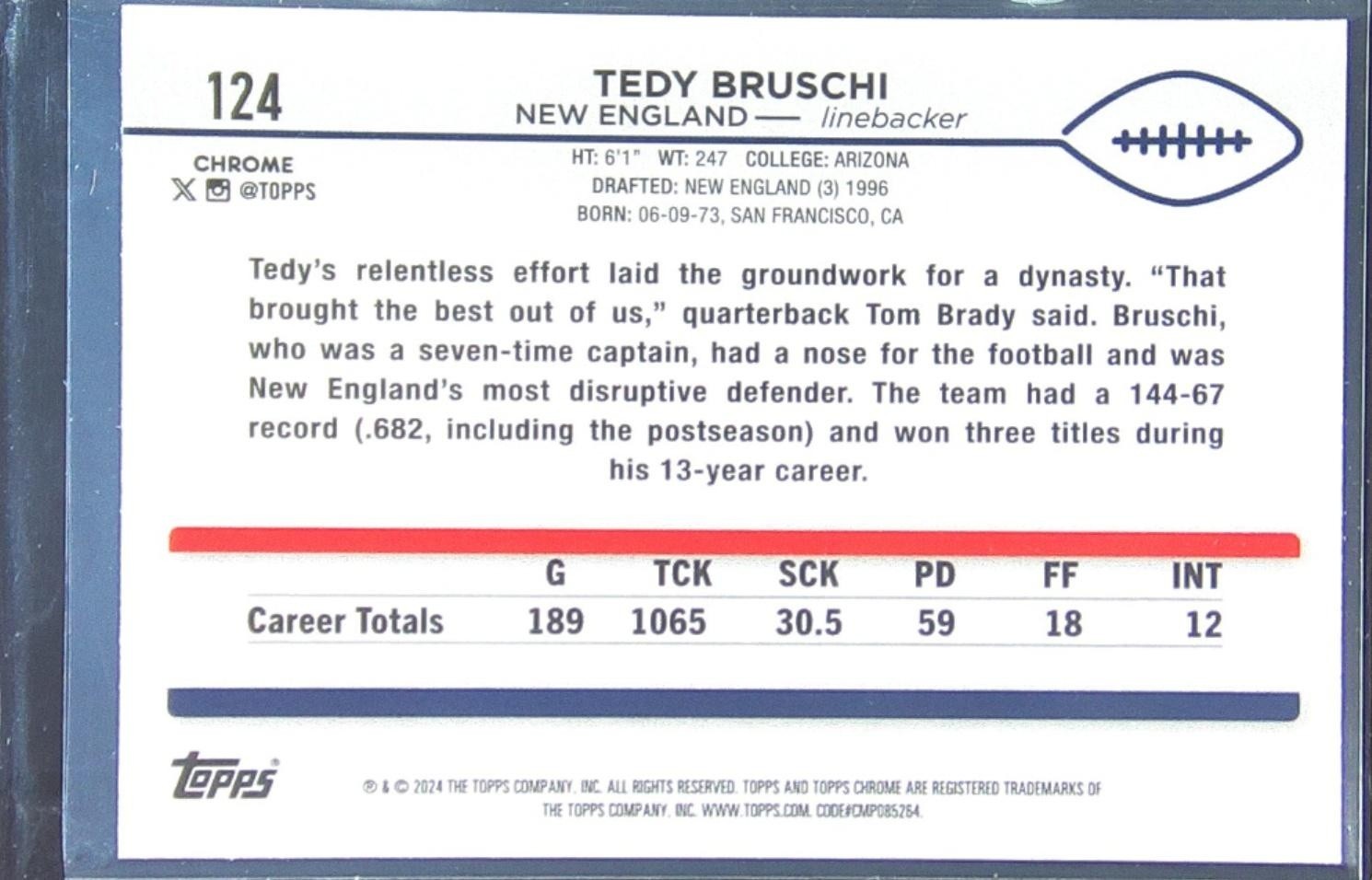 2024 Topps Chrome Tedy Bruschi Sepia Refractor #124 Patriots