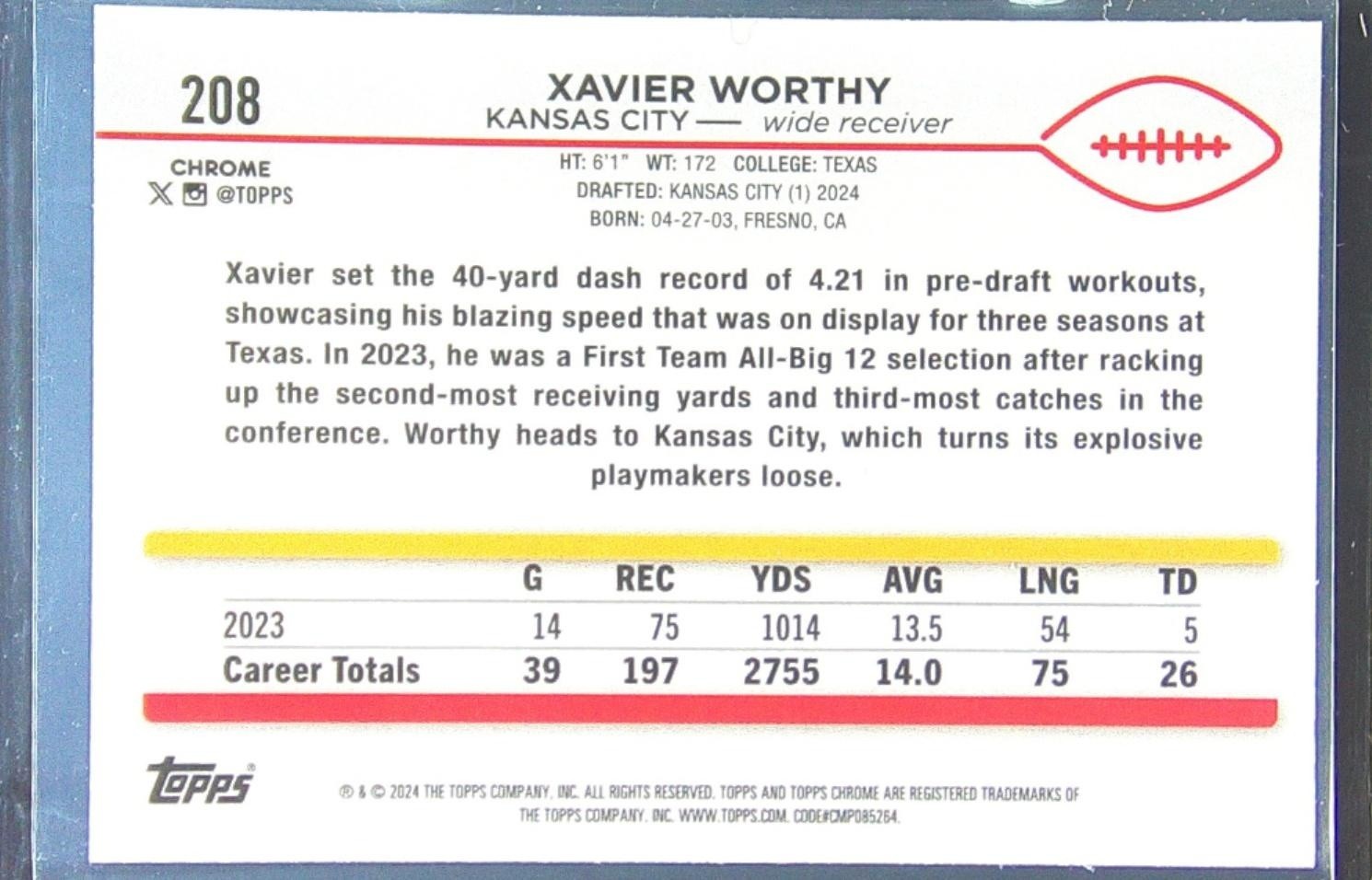 2024 Topps Chrome Xavier Worthy RC #208 Chiefs