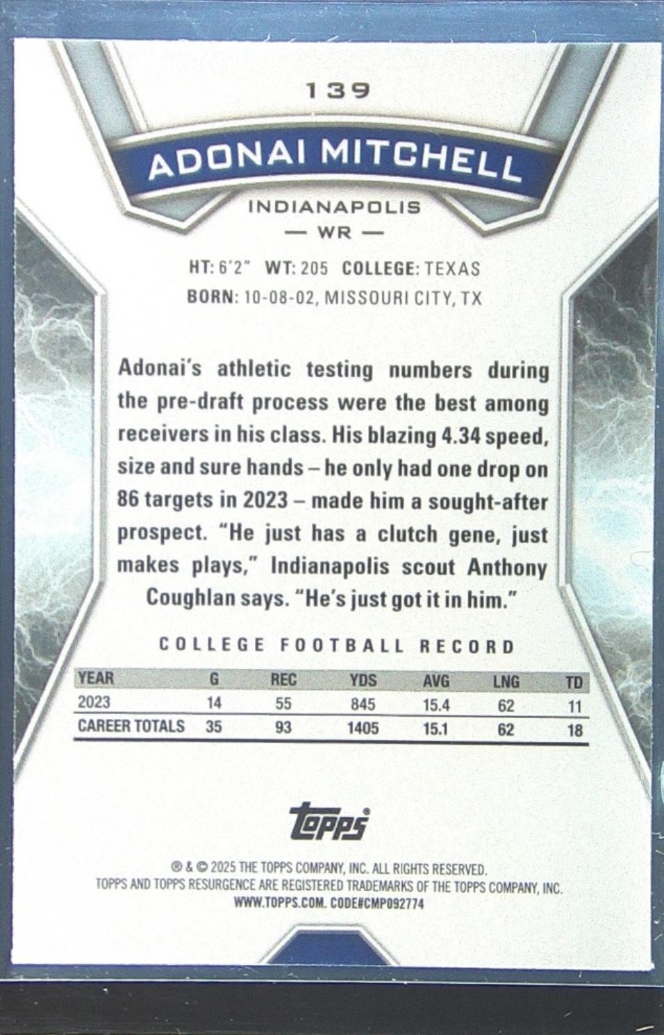 2024 Topps Resurgence Adonai Mitchell RC #139 Colts