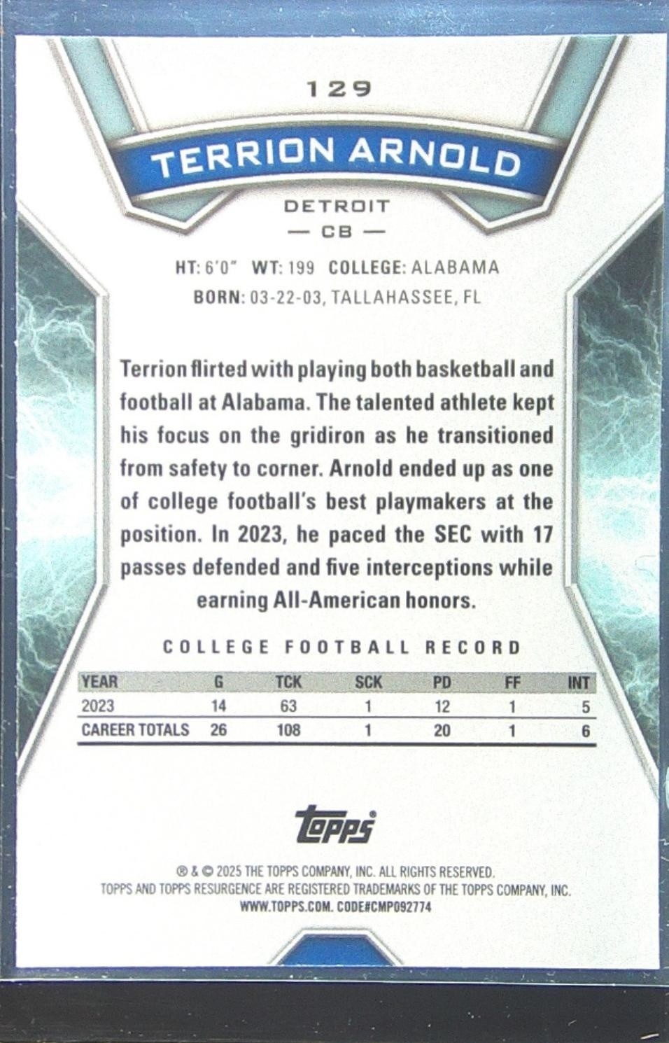 2024 Topps Resurgence Terrion Arnold RC #129 Lions
