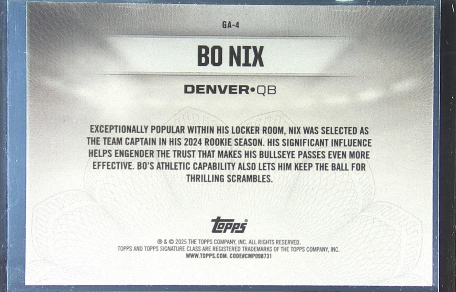 2024 Topps Signature Class Bo Nix RC #GA-4 Broncos Gridiron Ambassadors