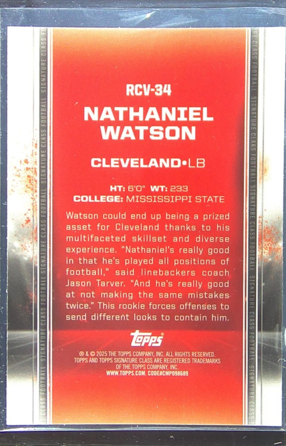 2024 Topps Signature Class Nathaniel Watson RC #RCV-34 Browns Base Chrome VAR