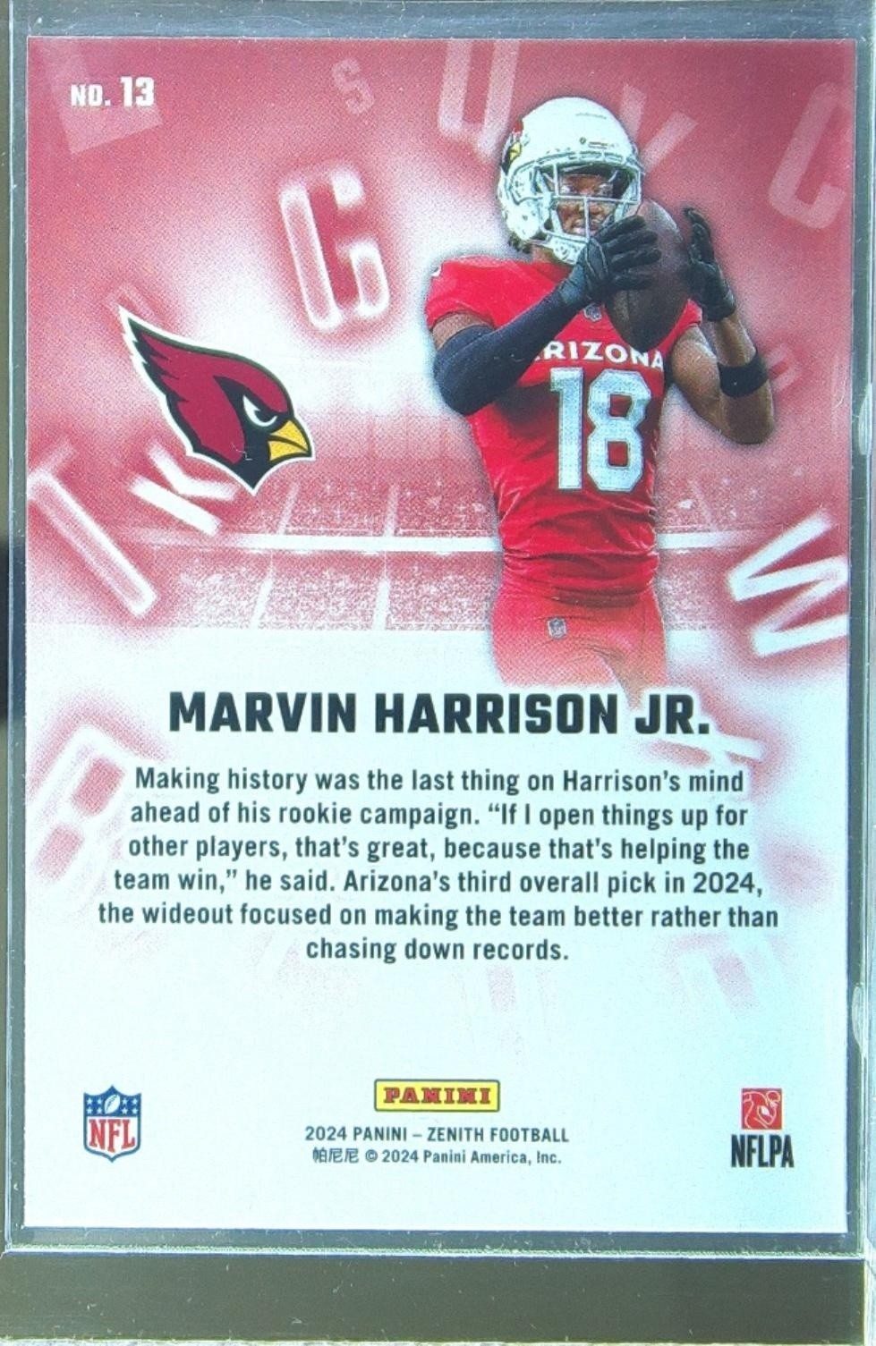 2024 Zenith Marvin Harrison Jr. RC #13 Cardinals A to Z