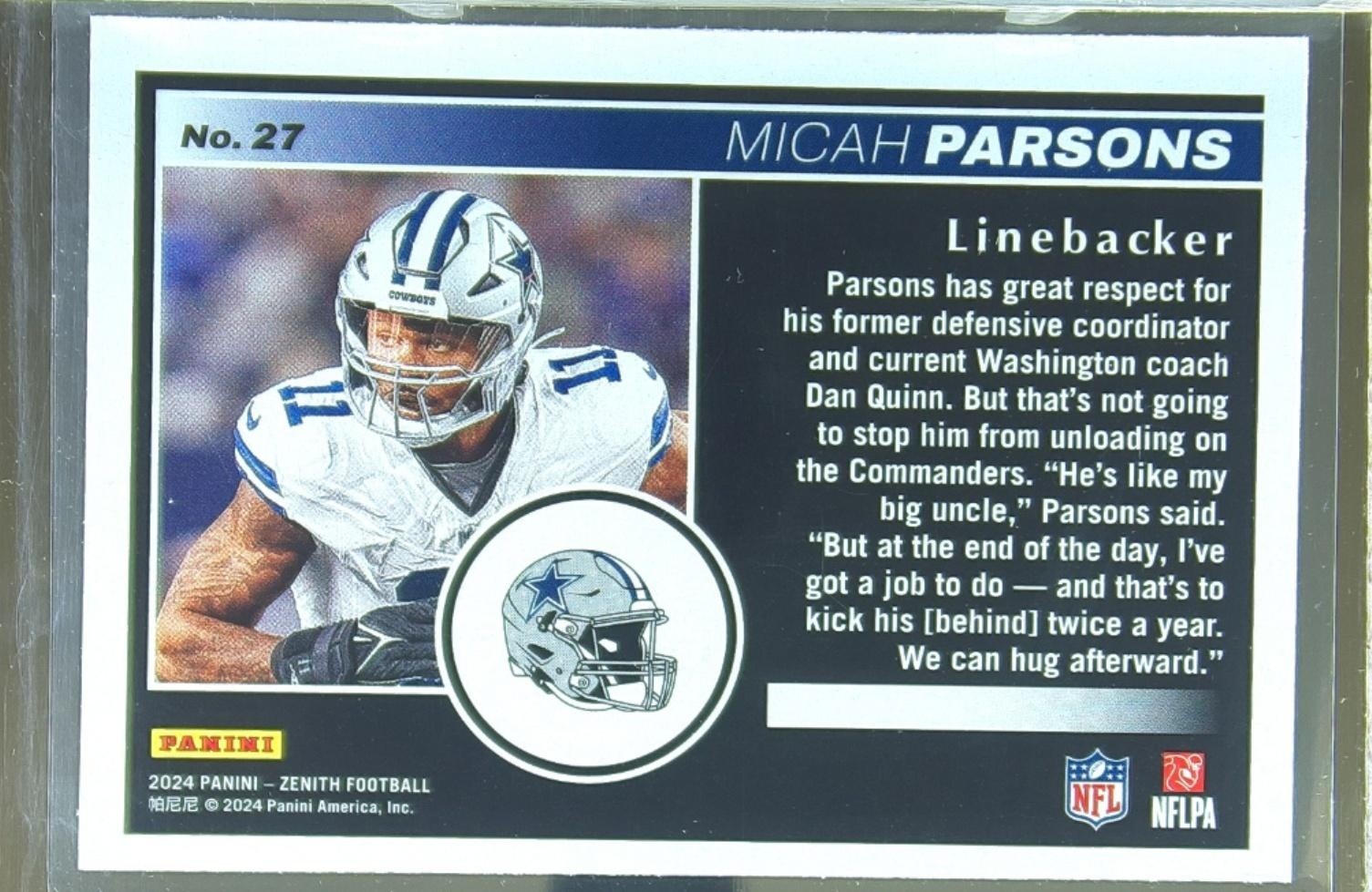 2024 Zenith Micah Parsons Two Minute Drill #27 Cowboys