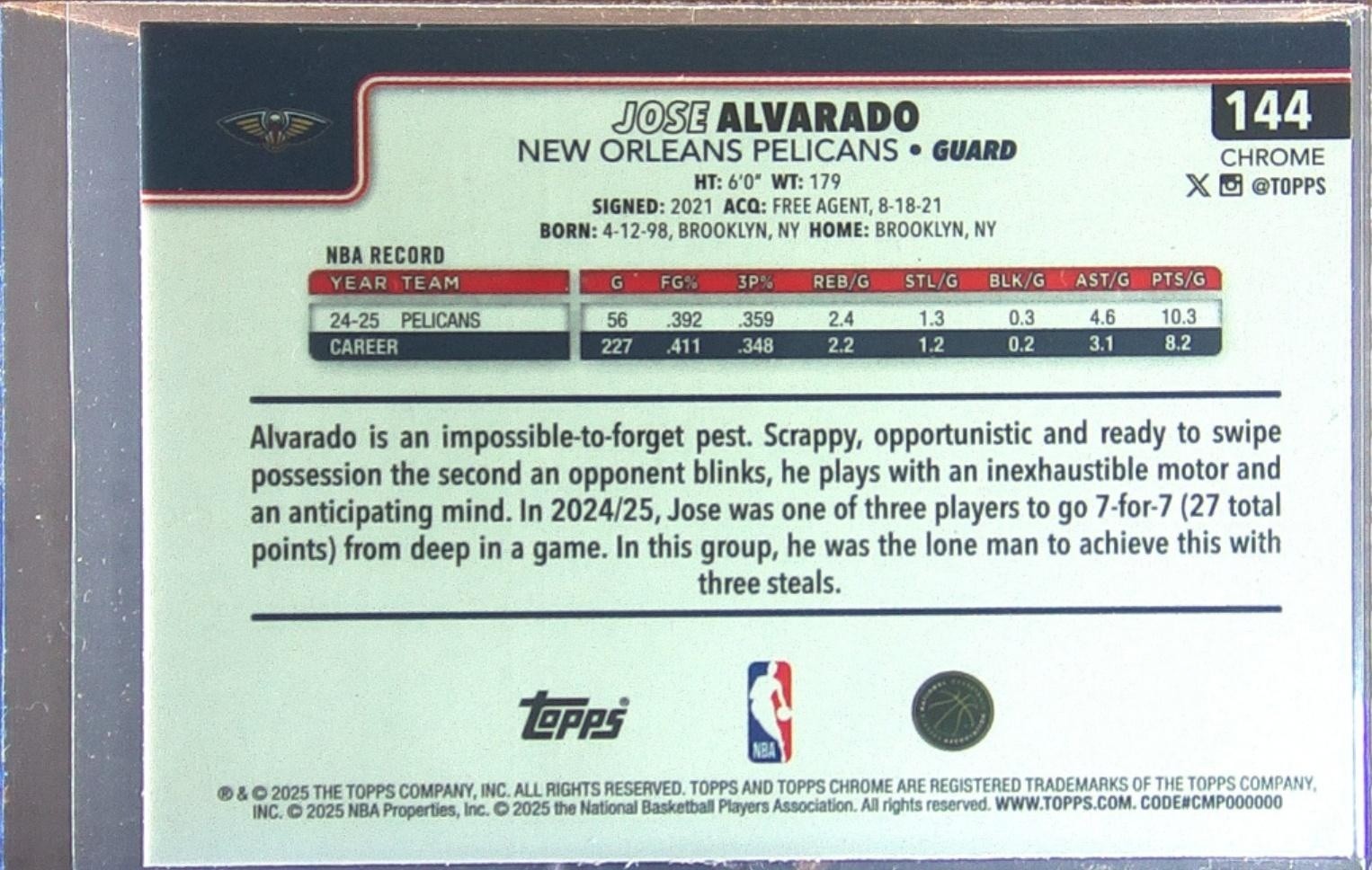 2025-26 Topps Chrome Jose Alvarado X Fractor #144 Pelicans