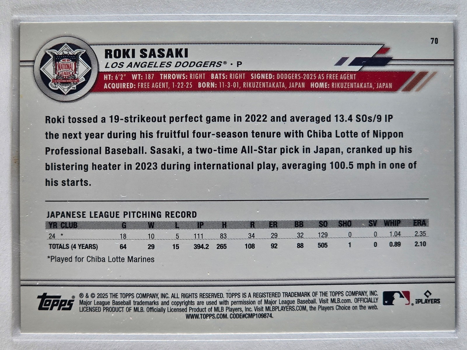 2025 Topps All-Star Game Atlanta Roki Sasaki LA Dodgers All Star Foil RC