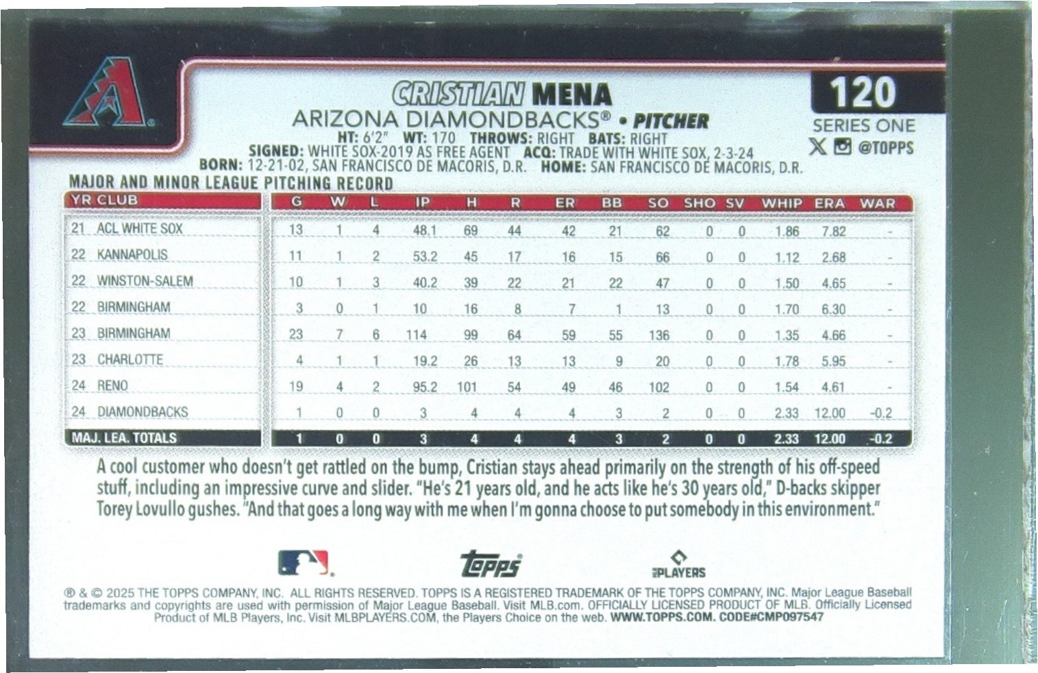 2025 Topps Cristian Mena RC #120 Diamondbacks